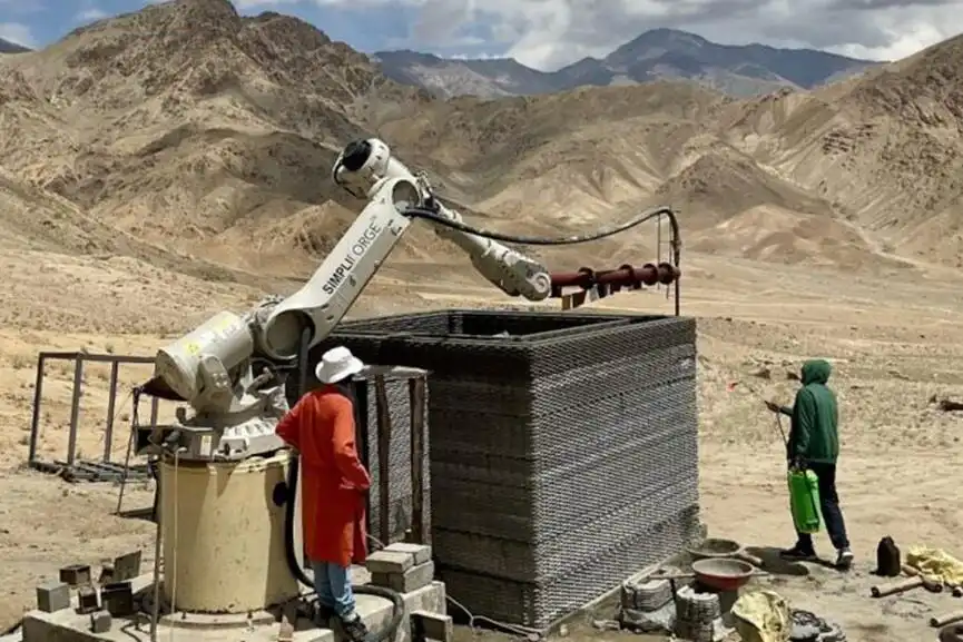 Under Project PRABAL (Portable Robotic Arm for the Construction of Bunkers and AnciLlaries) 🇮🇳IIT Hyderabad along with 🇮🇳Simpliforge Creations took a total printing time of 14 hours to build a 3D-printed protected military bunker in Leh🇮🇳 (at 11000ft) for Indian Army.