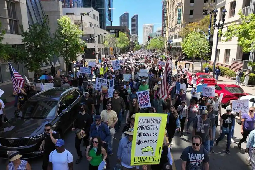 From immigration enforcement and federal layoffs to foreign policy and university crackdowns, protesters voiced strong disapproval of what they describe as an erosion of democratic norms and human rights.